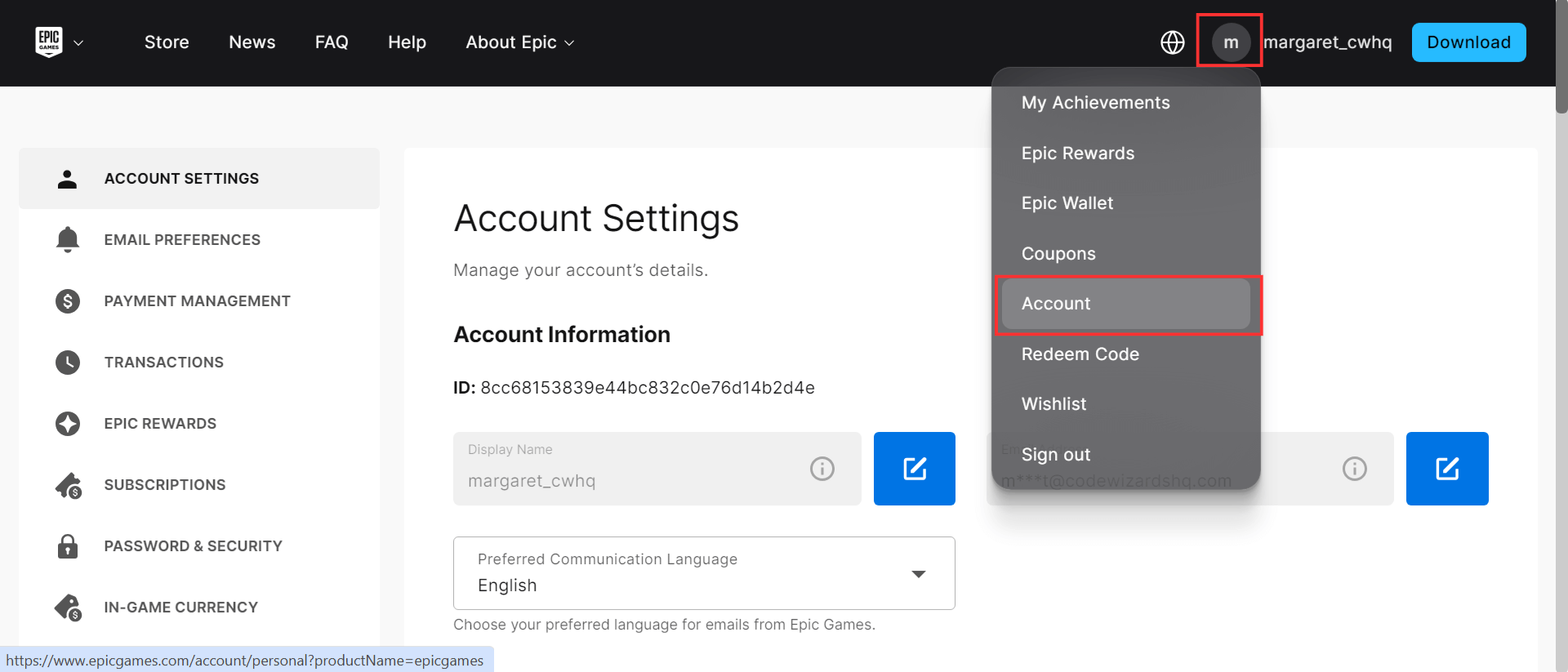 - Sign in to the Epic Account Portal at https://www.epicgames.com/