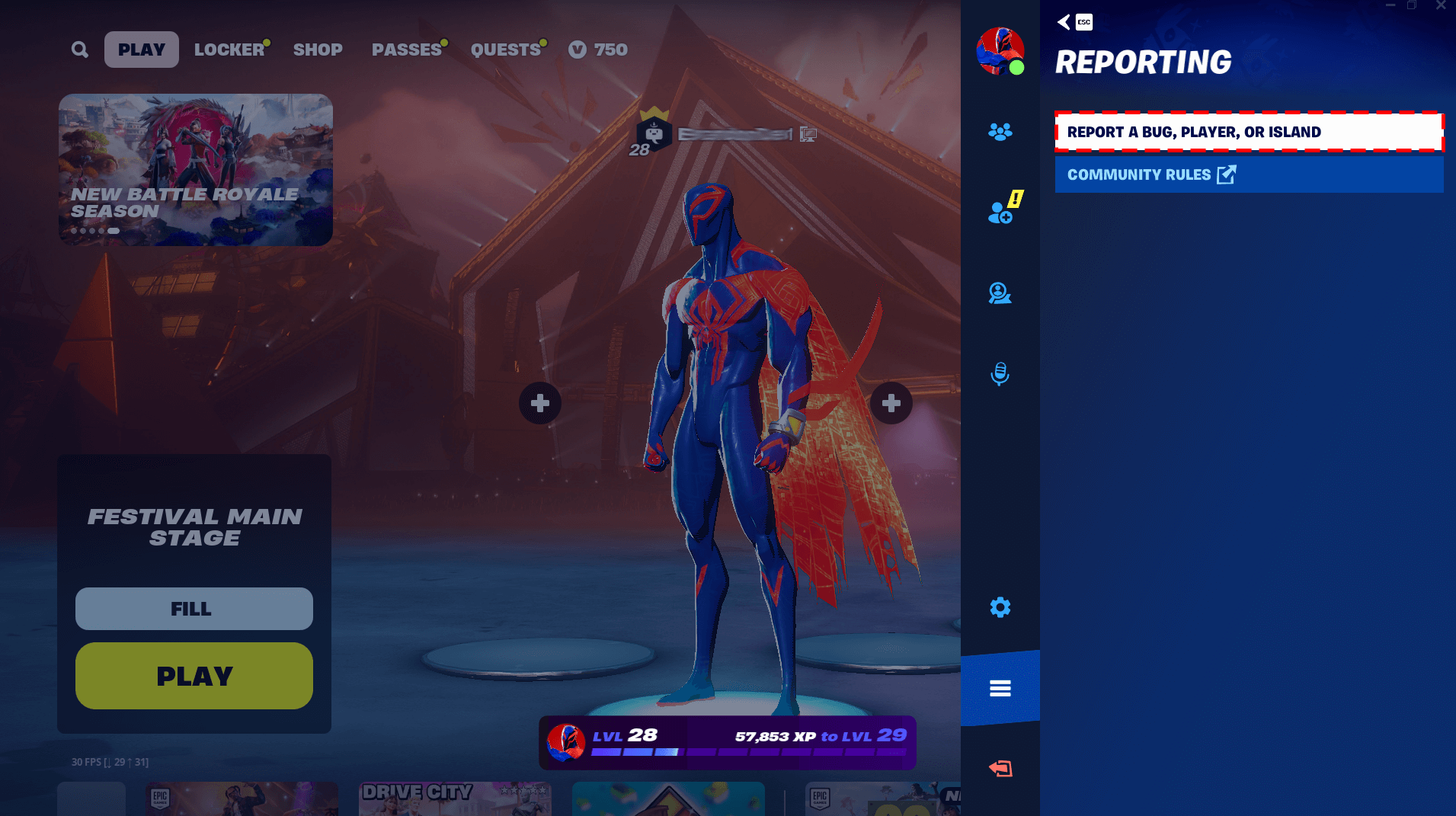 - Click REPORT A BUG, PLAYER, OR ISLAND
