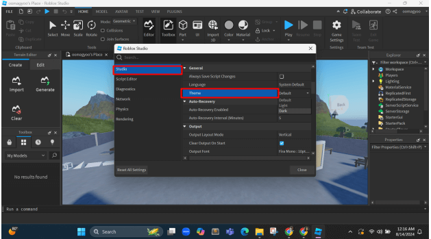 To customize your Roblox Studio settings: