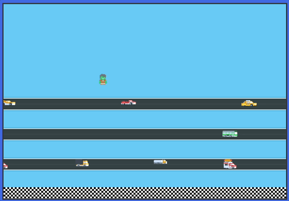 While it may be fun to come up with a brand new idea, I find it easier to mix and match games you have played before into your own unique game. My game is called Traffic vs Zombie which is a mash-up with Frogger and Plants vs Zombies. With this idea, I can answer the three questions listed above. I want my game to have one zombie and three roads with cars. The cars will drive along the roads blocking the zombie from a finish line. The player controls the zombie and tries to cross the road to get to the finish line.