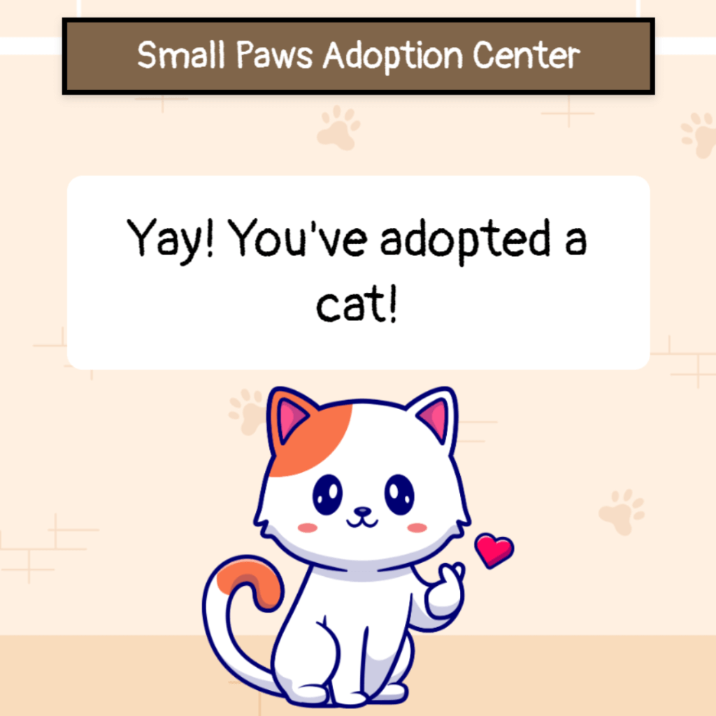 One of her favorite projects has been a candy store simulation where she used input functions to ask the user how many pieces of candy they wanted to buy. “It was really fun,” she said. Another project she enjoyed was a small pet adoption center, where the user could choose a pet to adopt. “I used an input function to ask the user which pet they would like, and they chose a pet. The animals were really cute in that one.” Dhriti adds.