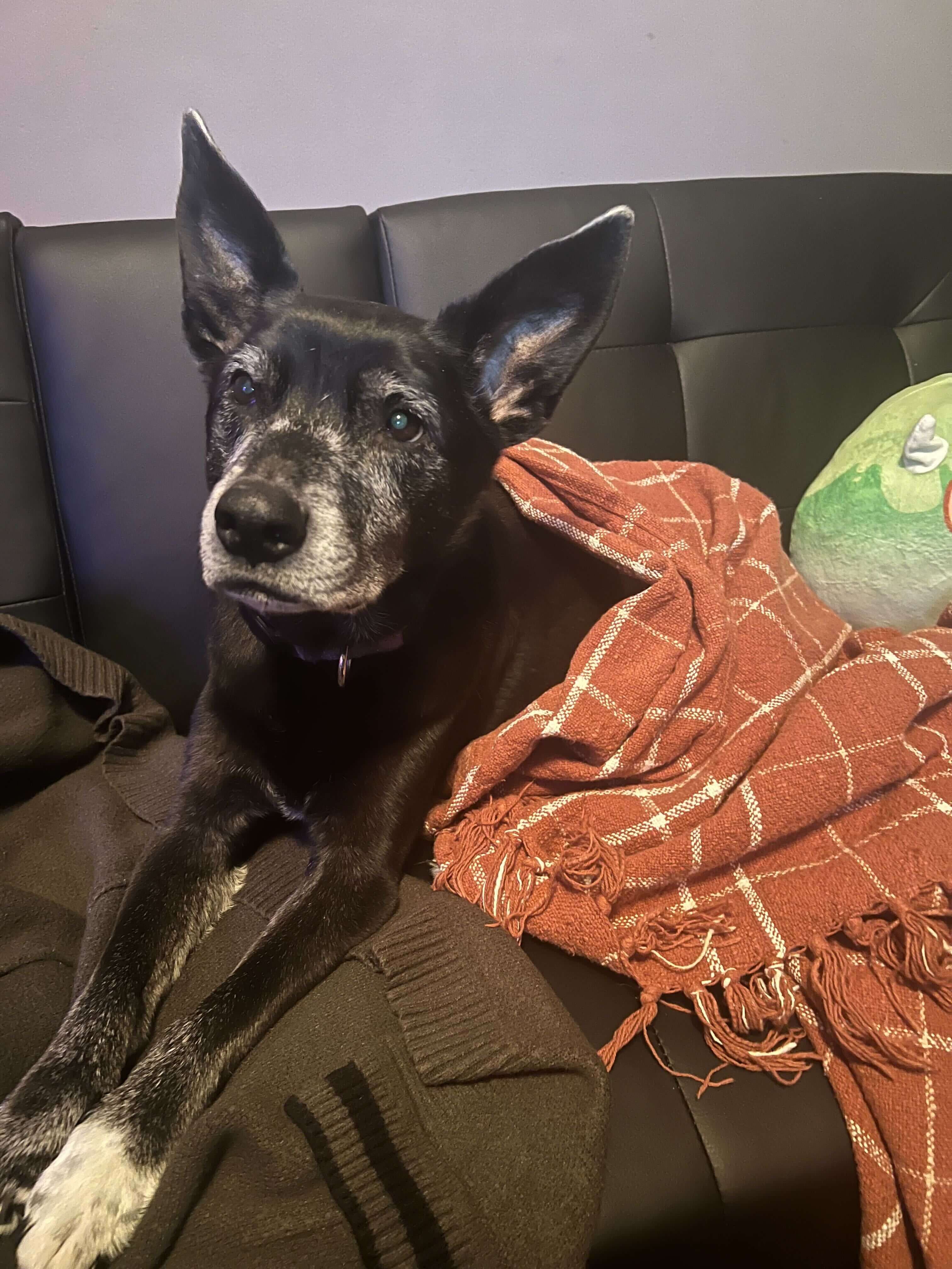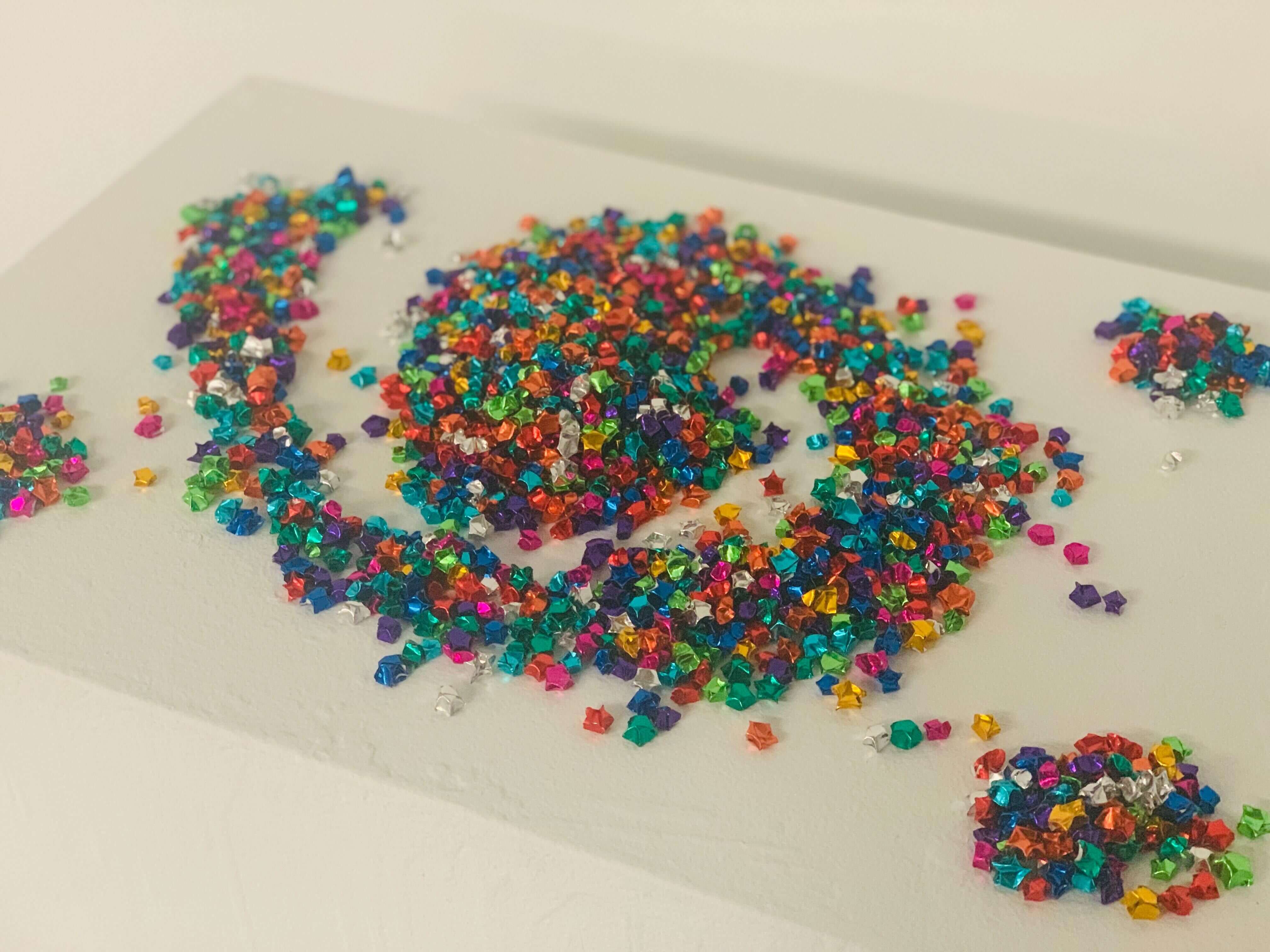 She’s also been folding origami stars as a way to stay focused and calm. “I try to take my anxieties or fidgets, any of my worries, and try to transfer them into something more productive,” she said. A tray next to her desk is filled with colorful stars. Her 15-year-old dog, Trixie, often curls up on a little couch next to her while she teaches, keeping her company as she works.
