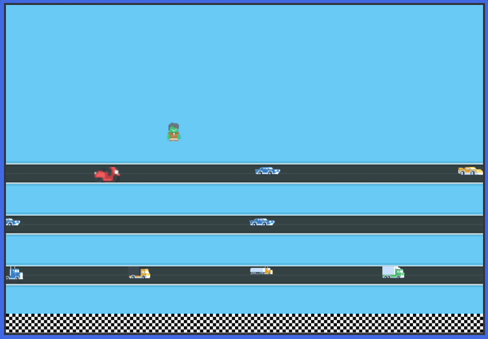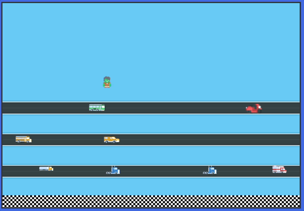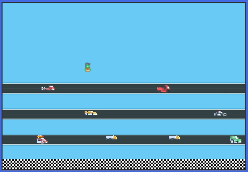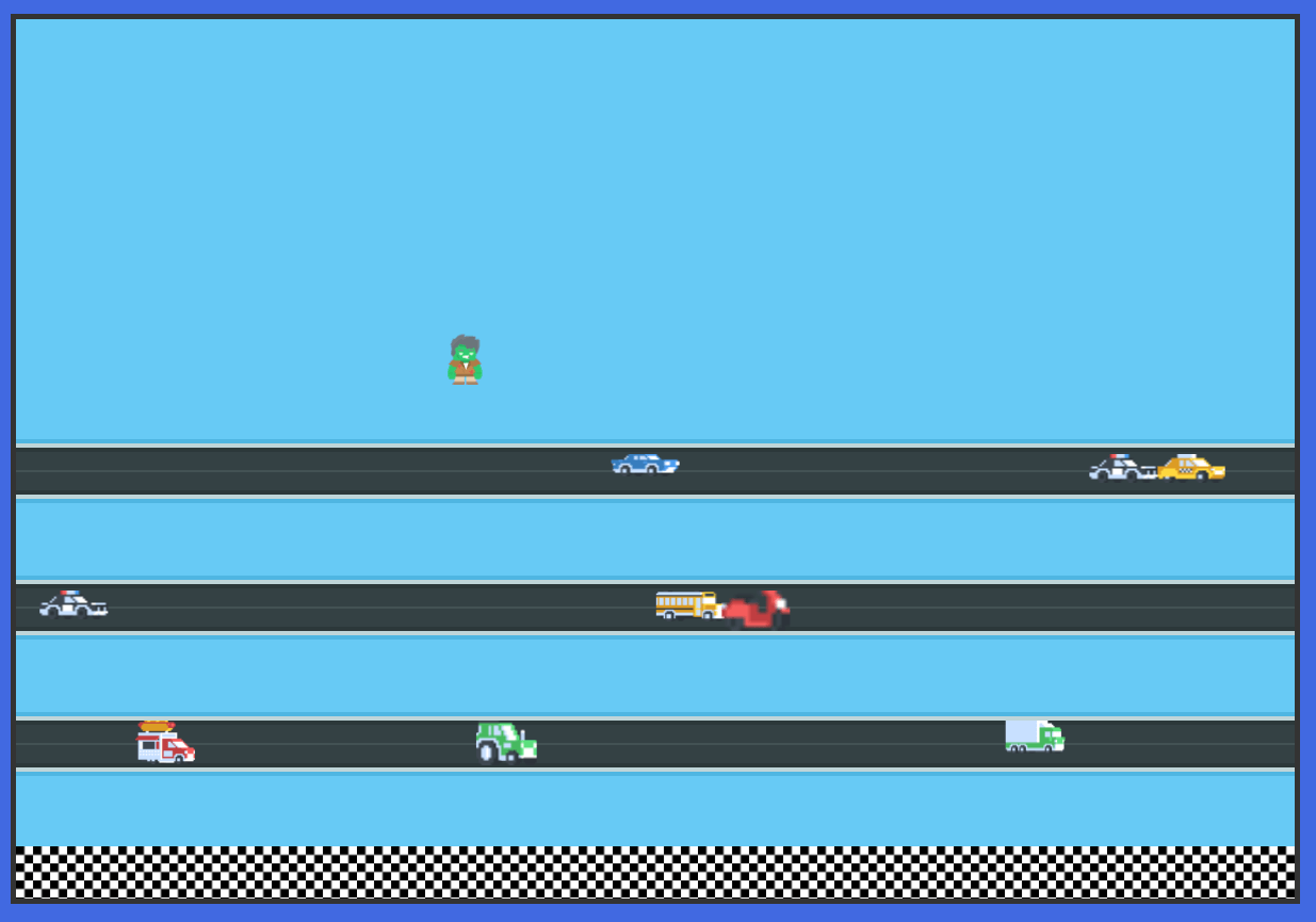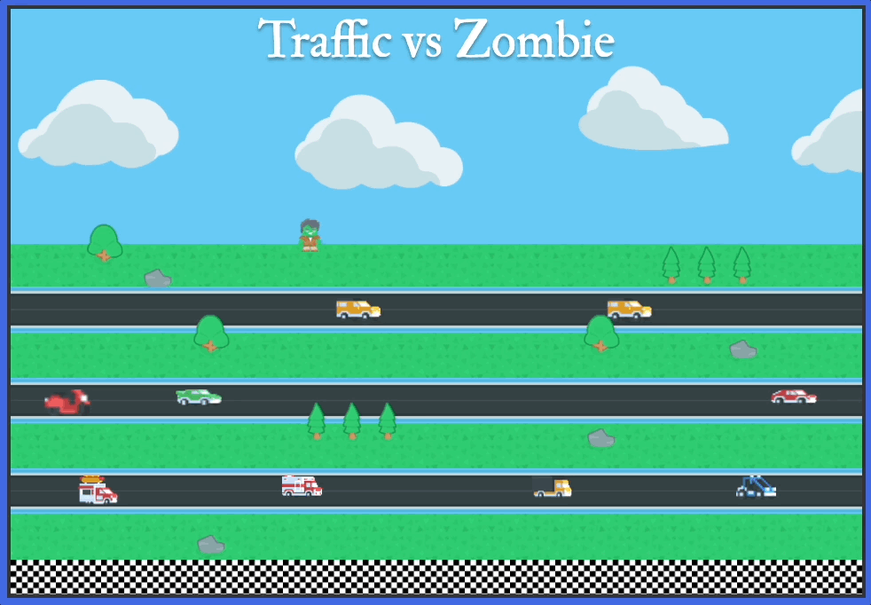 While it may be fun to come up with a brand new idea, I find it easier to mix and match games you have played before into your own unique game. My game is called Traffic vs Zombie which is a mash-up with Frogger and Plants vs Zombies. With this idea, I can answer the three questions listed above. I want my game to have one zombie and three roads with cars. The cars will drive along the roads blocking the zombie from a finish line. The player controls the zombie and tries to cross the road to get to the finish line.