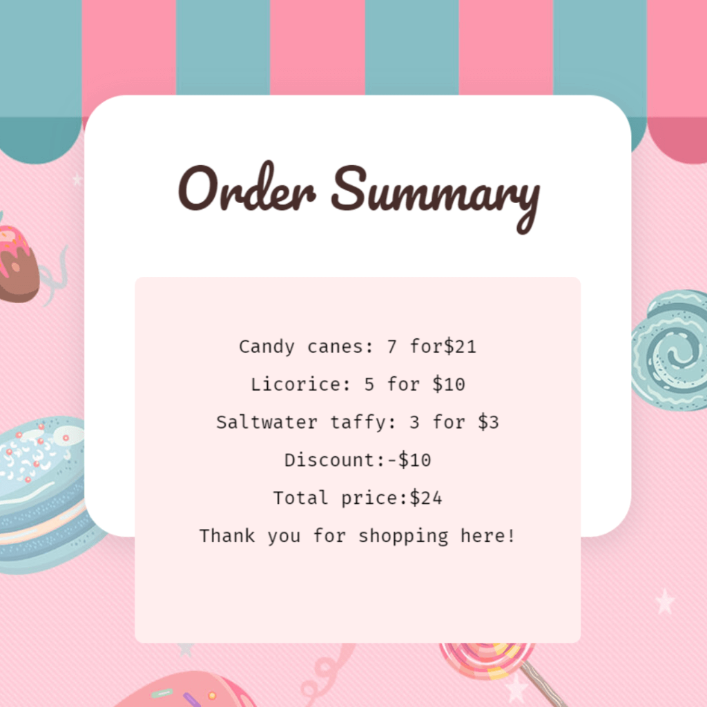 One of her favorite projects has been a candy store simulation where she used input functions to ask the user how many pieces of candy they wanted to buy. “It was really fun,” she said. Another project she enjoyed was a small pet adoption center, where the user could choose a pet to adopt. “I used an input function to ask the user which pet they would like, and they chose a pet. The animals were really cute in that one.” Dhriti adds.